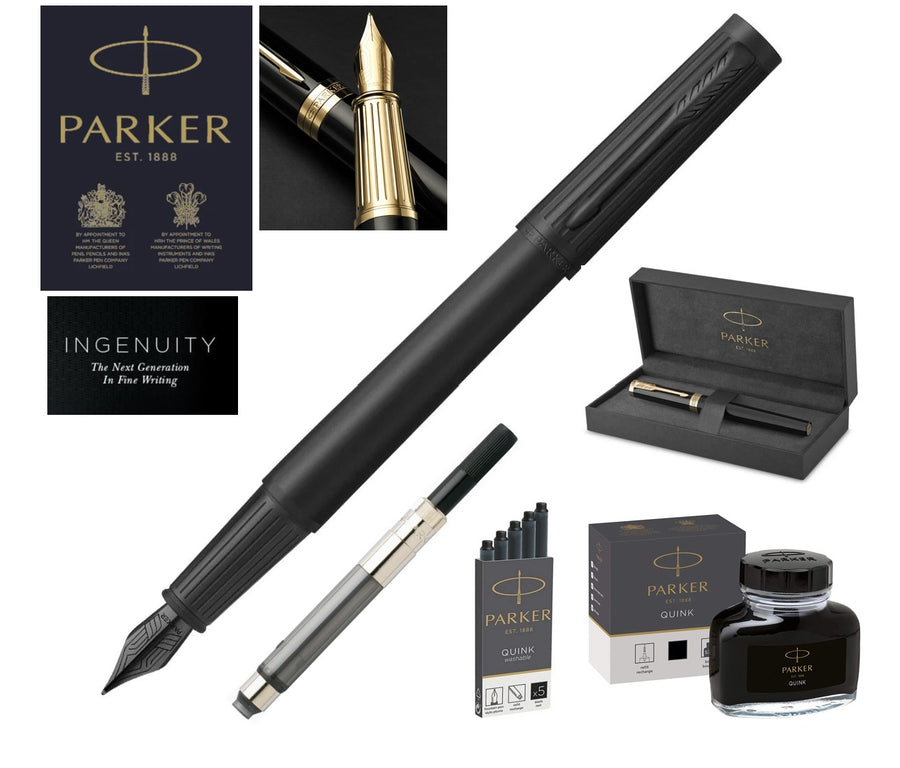 Parker Ingenuity Fountain Pen SET & Accessories - Black Matte Trim (BT) - Medium
