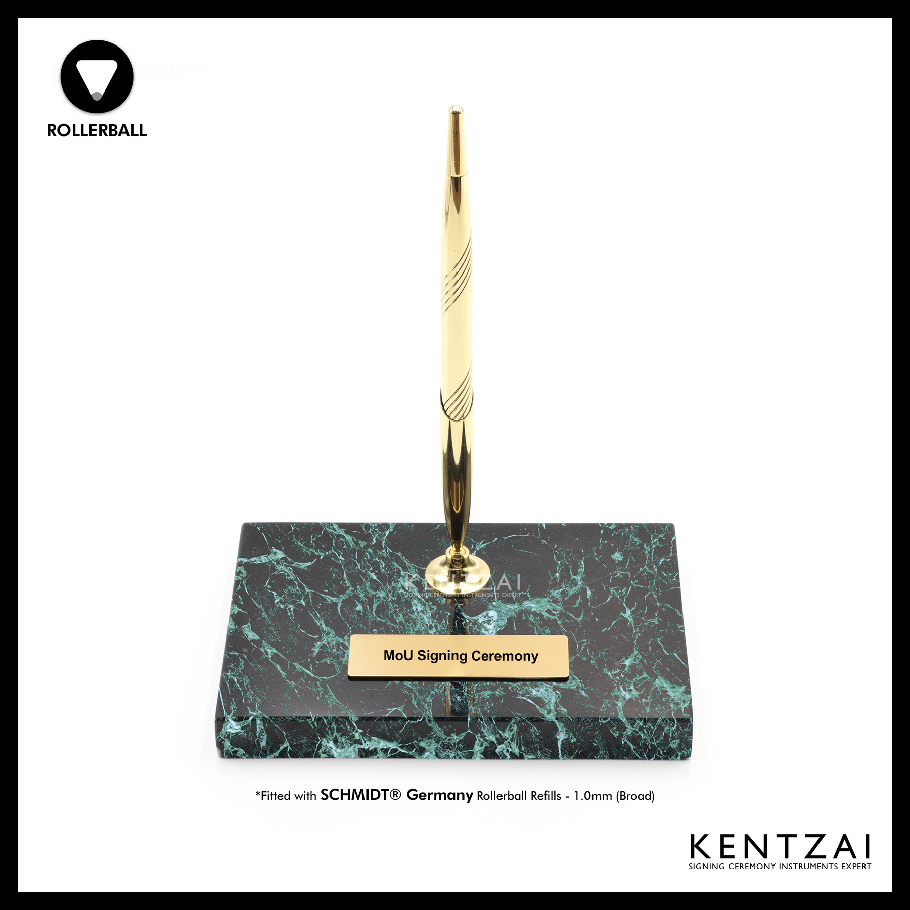 KENTZAI Desk Pen Stand - Black MARBLE Prada Green Gold Trim - (SINGLE Pen) - FULL GOLD ROLLERBALL - Signing Ceremony Set