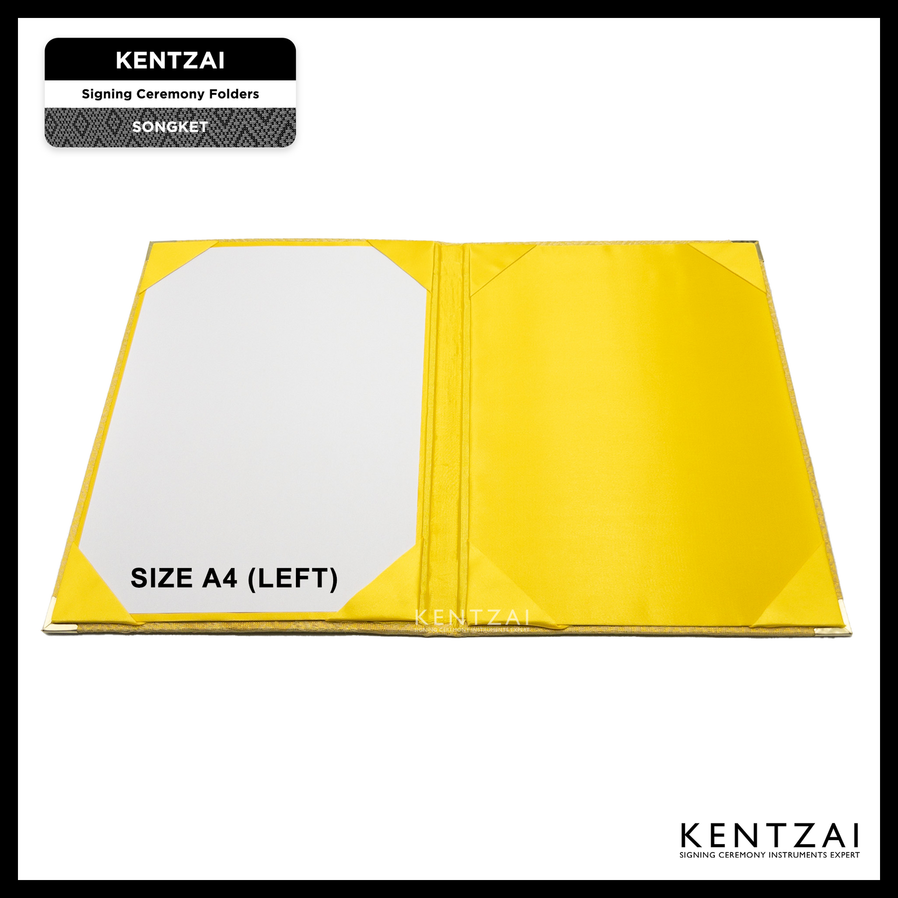 KENTZAI Signing Ceremony EXCLUSIVE A4 Document Folder SONGKET Cloth - ROYAL YELLOW GOLD Songket Cover, ROYAL YELLOW GOLD Satin Shinny Inside