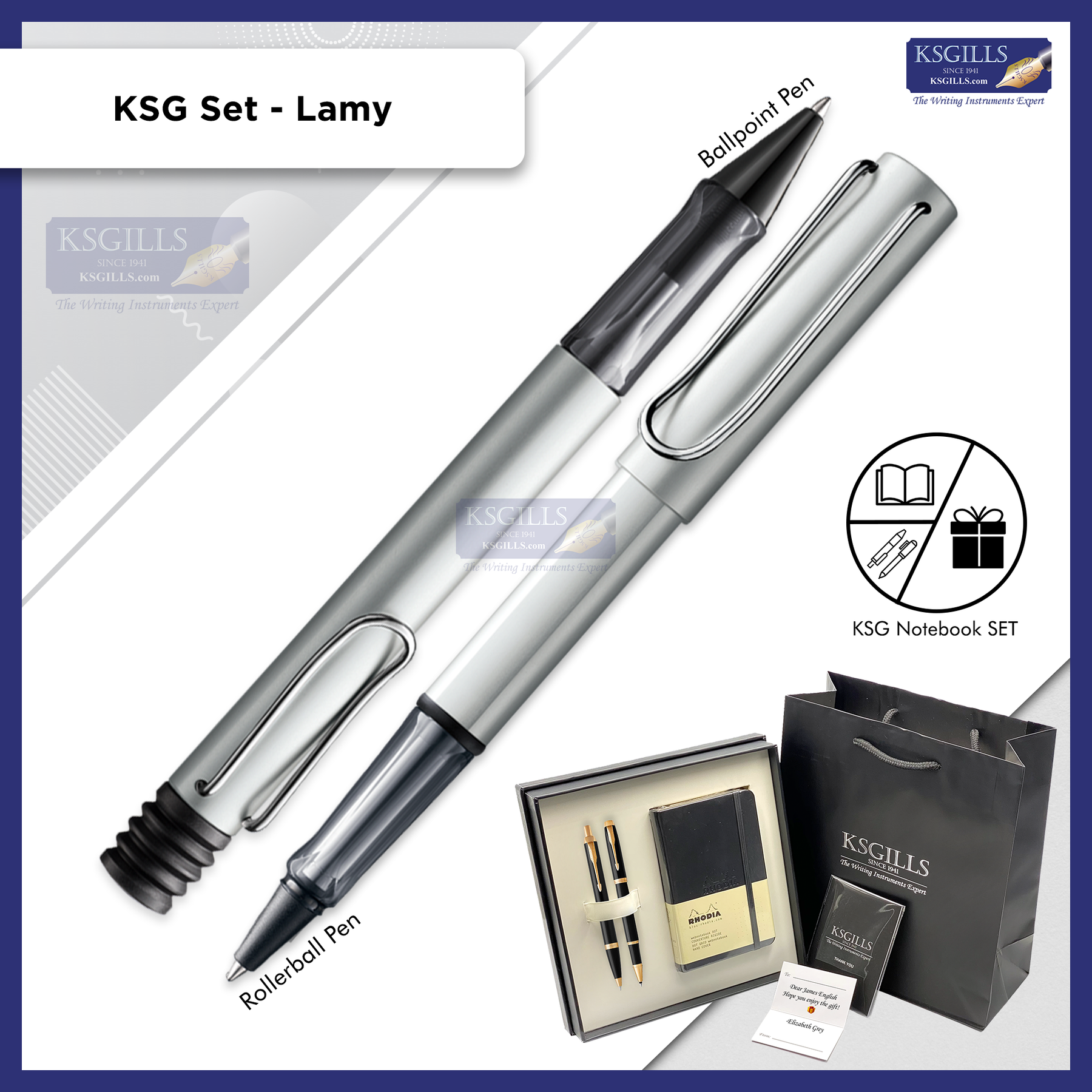 KSG set - Notebook SET & Double Pens (Lamy Al-Star Rollerball & Ballpoint Pen - White Silver) with RHODIA A6 Notebook