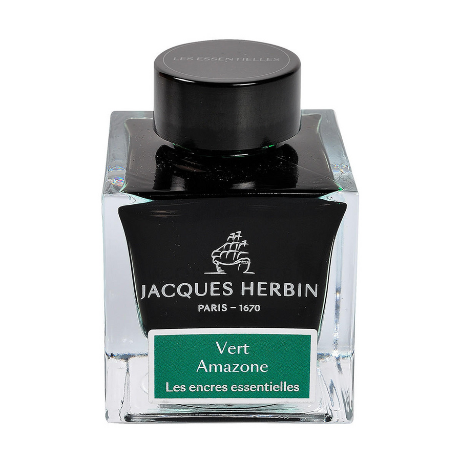 Jacques Herbin Ink Bottle - 50ml Fountain Pen - Essentials Series - Vert Amazone Green