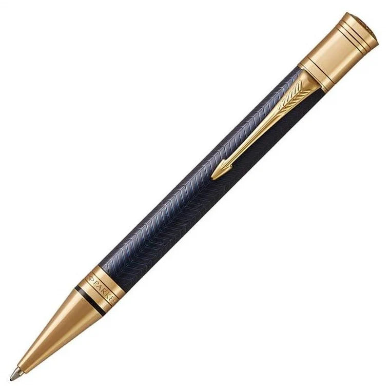 Parker Duofold Ballpoint Pen - Blue Chevron Gold Trim - Refill Black - Medium (M)