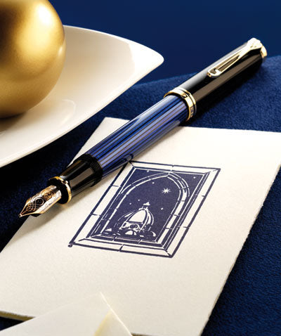 Pelikan Souveran M600 Fountain Pen - Black Blue Gold Trim