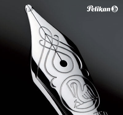 The Pelikan Souveran Series represents the highest quality in writing instrument manufacture using only the best materials available. All fountain pens feature Pelikan's unique differential piston filling system to ensure a large ink capacity with a visible indication of ink level via the translucent barrel (or portion of the barrel in the case of all black or dark blue pens). The Pelikan Souveran 800 fountain pen is an all-time classic for its traditional styling and impeccable performance. The 800 Series is oversized for those who prefer extra-large writing instruments. The fountain pen has a handcrafted 18kt bi-color gold and rhodium nib. It fills only from an ink bottle. The 800 series has solid brass inner components and 18kt gold layered clip and trim.